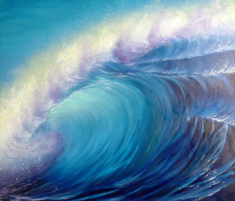 Painting of wave (above), titled “Adrenaline,” by Stephen.