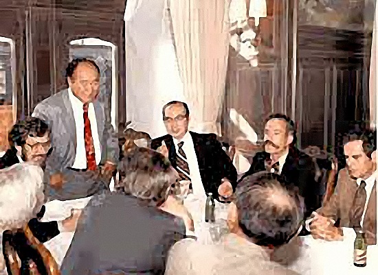 Rev. Moon meets with theologians at East Garden in 1979.