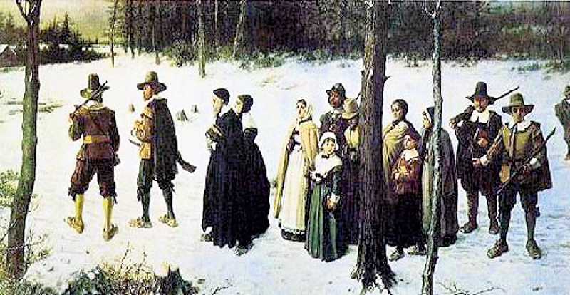 The pilgrims’ religiosity is better seen in the Mayflower Compact, signed on board the boat, which begins thus in a modern version: “In the name of God, Amen. We, whose names are underwritten, the loyal subjects of our dread Sovereign Lord King James, by the Grace of God, of Great Britain, France, and Ireland, King, defender of the Faith, etc. Having undertaken, for the Glory of God, and advancements of the Christian faith and honor of our King and Country, a voyage to plant the first colony in the Northern parts of Virginia, do by these presents, solemnly and mutually, in the presence of God, and one another, …” Yes, they did realize that they were off course and it ends: “In witness whereof we have hereunto subscribed our names at Cape Cod the 11th of November, in the year of the reign of our Sovereign Lord King James, of England, France, and Ireland, the eighteenth, and of Scotland the fifty-fourth, 1620.”