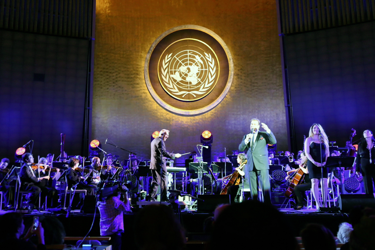 David Eaton performs with actor/singer Robert Davi and the New York City Symphony at the United Nations’ 70th Anniversary concert on June 30, 2015.
