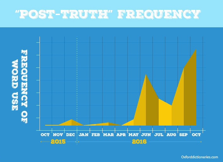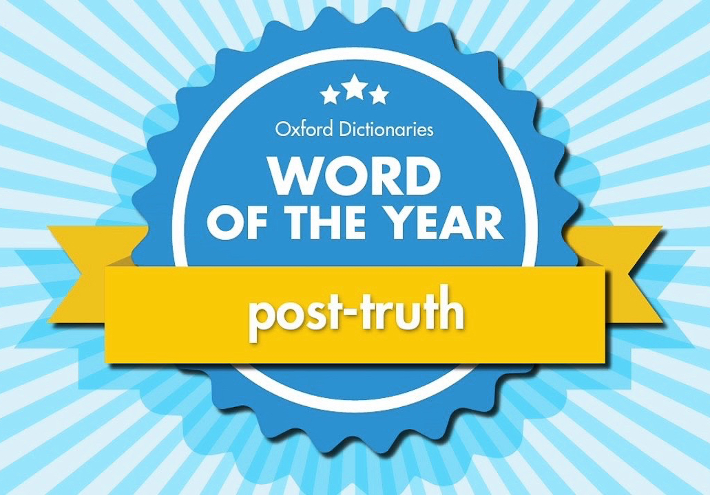 gs-1308The Oxford Dictionaries Word of the Year 2016 is “post-truth – an adjective defined as “relating to or denoting circumstances in which objective facts are less influential in shaping public opinion than appeals to emotion and personal belief.”