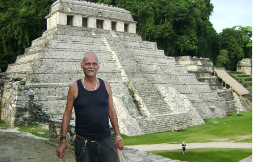 The author at a Palenque, Mexico, Mayan temple complex.