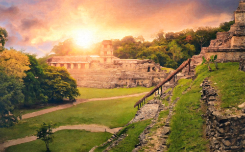 Illustration at top: Mayan ruins at Palenque, Mexico.