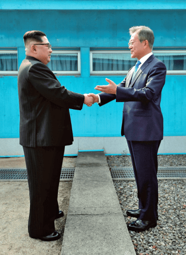 On April 27, the third inter-Korean summit took place on the South Korean side of the demilitarized zone. Carried live on South Korean television, the hours of meetings produced the Panmunjom Declaration, in most respects a summary of preceding inter-Korean documents dating back to 1972. The most memorable moment was the handshake across the Military Demarcation Line by the two Korean leaders, followed by Kim crossing into the South. Moon then asked Kim, “So, when do I get to visit North Korea?” Kim took his hand and said, “Right now,” escorting Moon to the northern side of the concrete divide. Earlier summits both occurred in Pyongyang, in 2000 and 2007. The fact Kim was willing to come to the South, albeit in the highly secure Joint Security Area of Panmunjom, was a significant step. Moon also gave Kim a USB stick containing materials on a “New Economic Map of the Korean Peninsula.” The two leaders agreed to hold future inter-Korean summits, pursue continuing dialogue and explore avenues of cooperation.
