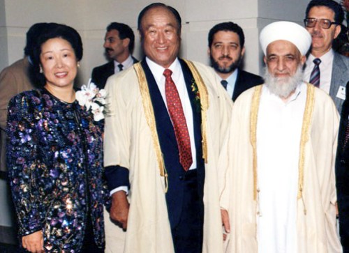 Photo at top: Rev. and Mrs. Moon with Sheikh Ahmed Kuftaro, the Grand Mufti of Syria, in 1989.