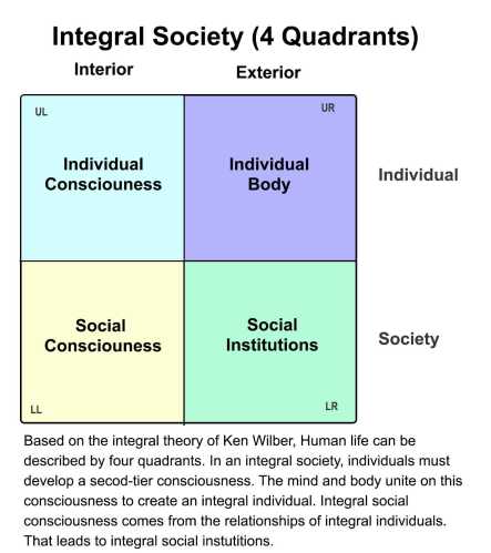The articulation of the integral vision is not this book’s purpose, but a brief diagrammatic overview is provided in the Appendix and on the Integral Society website. I apply integral theory to the study of society and social institutions to address critical social problems of our time, the relationship between sovereign individuals and social institutions.